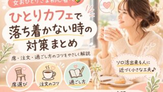 「ひとりカフェに行ってみたいのに、入った瞬間からそわそわしてしまう」。そんな気持ちはとても自然です。落ち着かないのは向いていないからではなく、席の選び方や注文の流れ、過ごし方がまだ「自分の型」になっていないだけかもしれません。この記事では、...