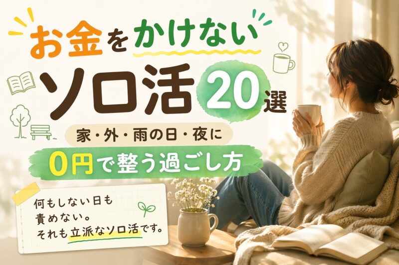 この記事では、お金をかけないソロ活を家・外・雨の日・夜に分けて20個紹介し、今日の気分に合う選び方の早見表もまとめました。
